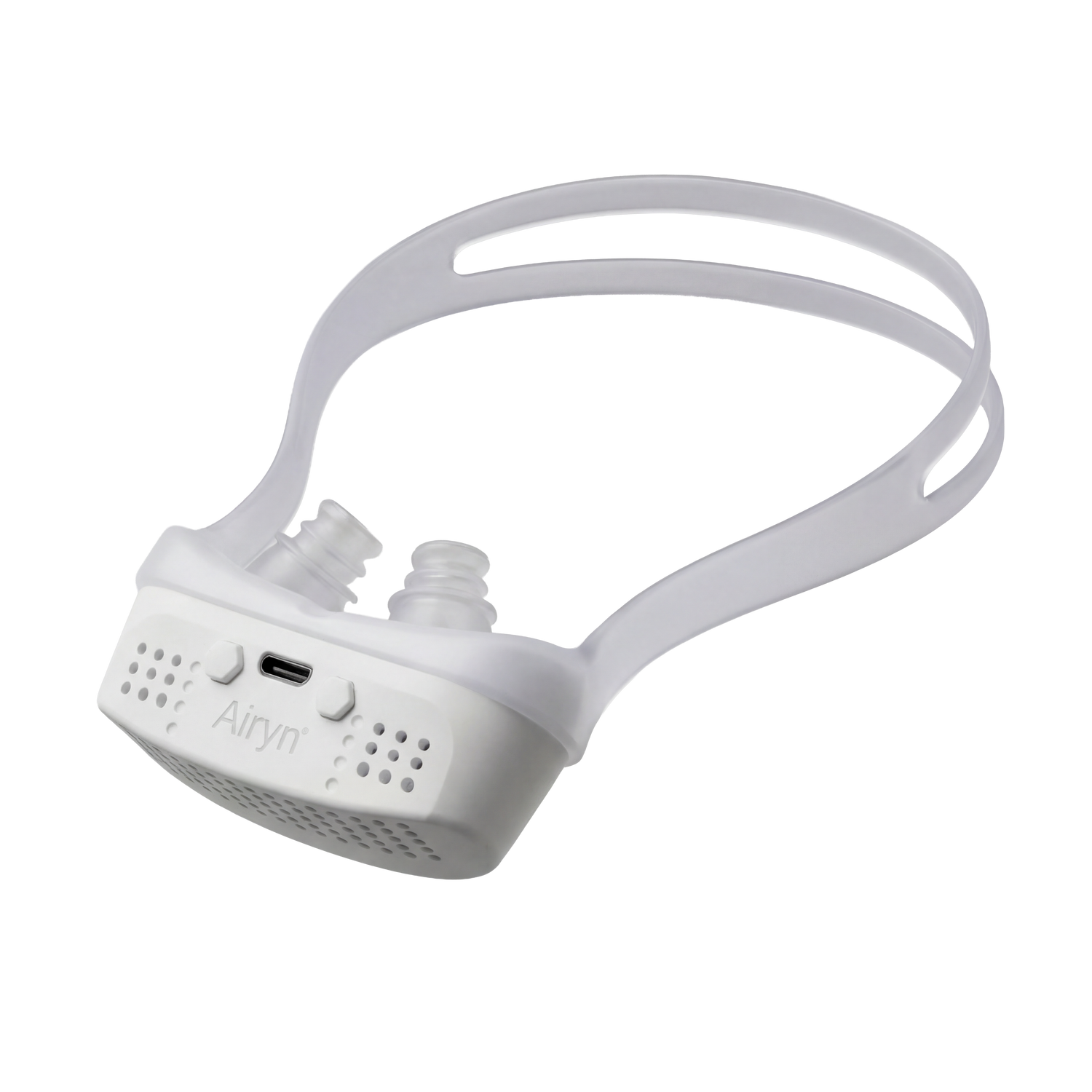 Airyn is a gentle, wearable anti-snore device designed to support natural airflow while you sleep. By helping you breathe more easily through the night, Airyn can reduce snoring and promote deeper, more restful sleep — for you and your partner.